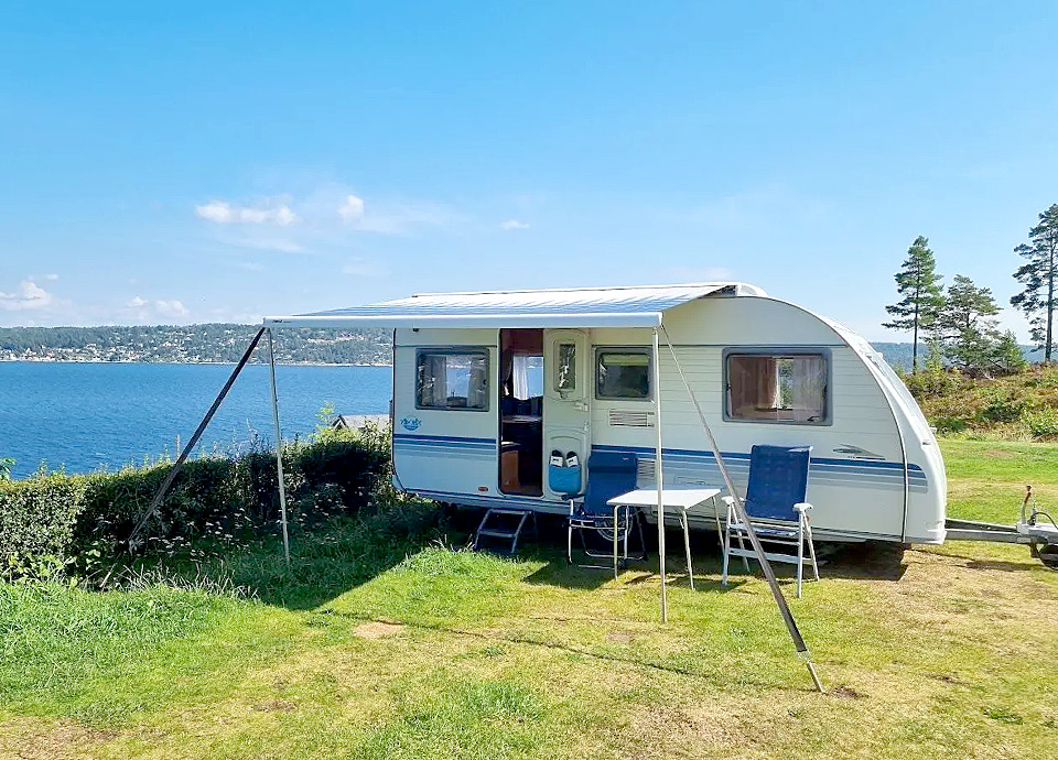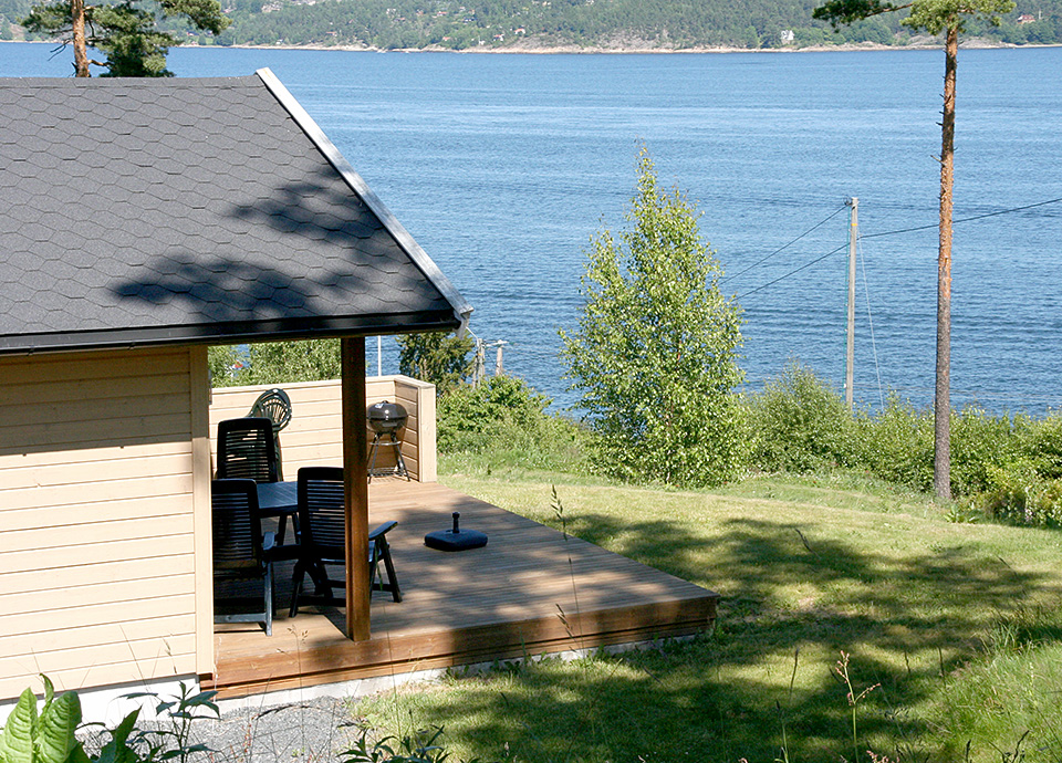 Vi har tre utleiehytter på 43 m2. Disse hyttene har flott utsikt over Oslofjorden, det er god plass rundt hyttene, og bare 200 m til stranden. Hyttene er innredet i lyse friske toner, og de er utstyrt med det meste man trenger.